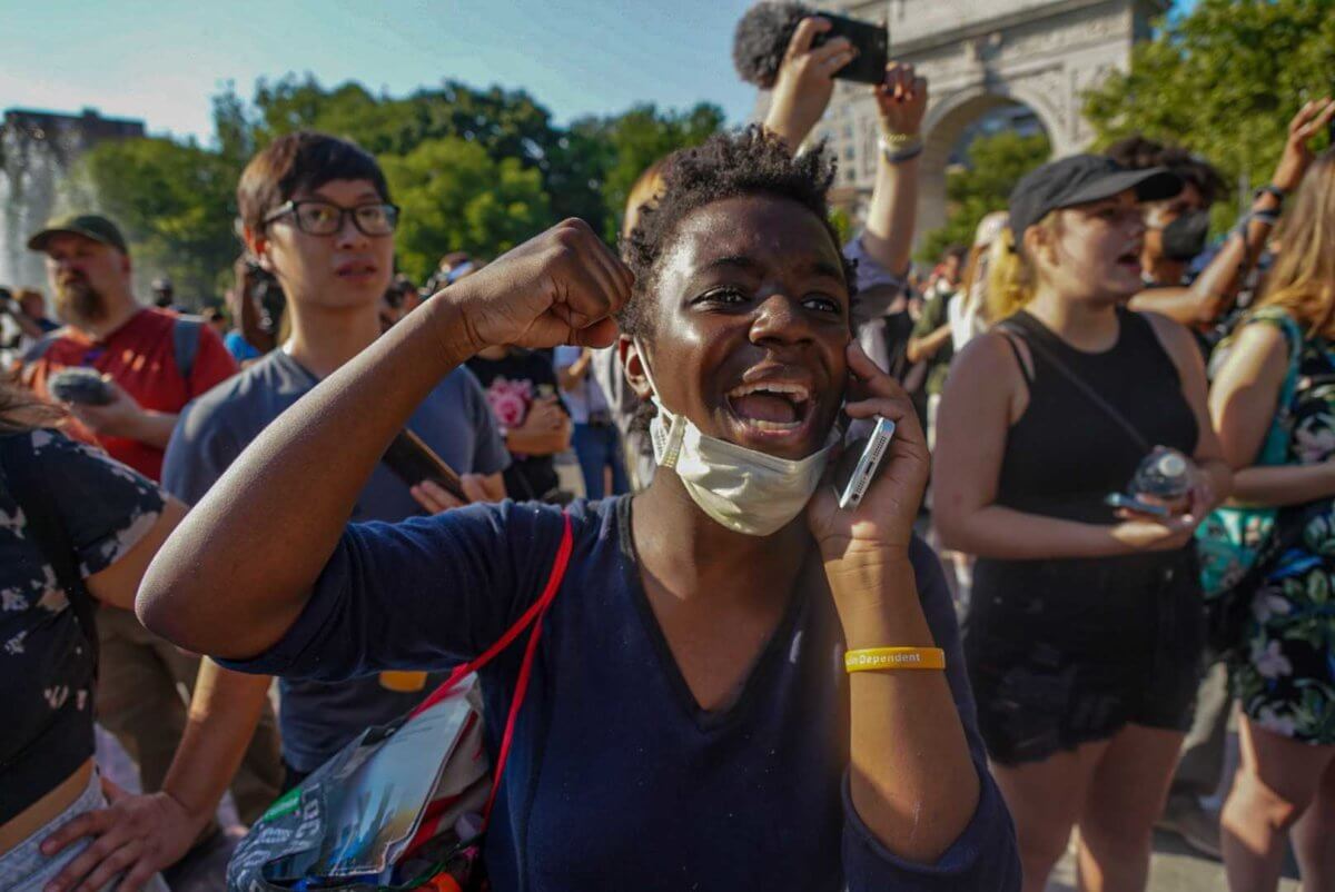 The participants at the Foley Square and Union Square protests merged together with the gathering at Washington Square Park, with the crowd size swelling into the thousands, making it nearly impossible for people to move.