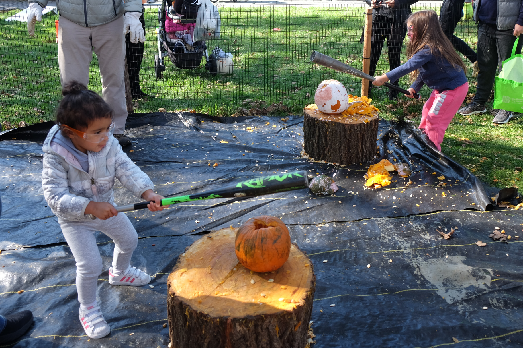 BY TEQUILA MINSKY | Bright sun warmed the November chill. It couldn’t have been a more beautiful Sunday at Chelsea Waterside Park, 11th Ave and 23rd Street, when throngs of families flocked to the second annual fall festival of pumpkin smashing hosted by Hudson River Park.