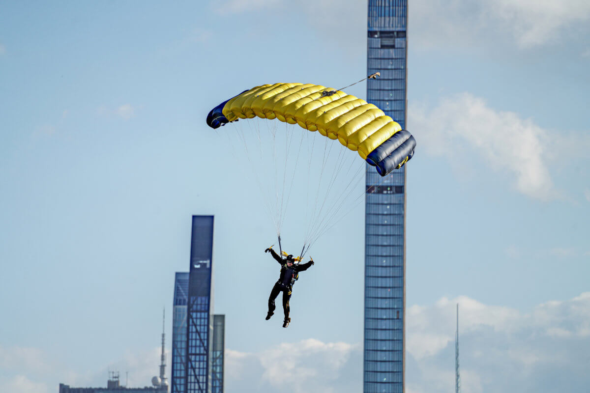 “It’s amazing and being a part of the team that did it for the first time ever! No one has ever gotten to jump in here. I’m baffled at the opportunity,” exclaimed George Monteveride, SO1 Navy Seal as he described the feeling of parachuting into Central Park, adding, “It’s awesome seeing the community giving us support, this town has been through a lot.”