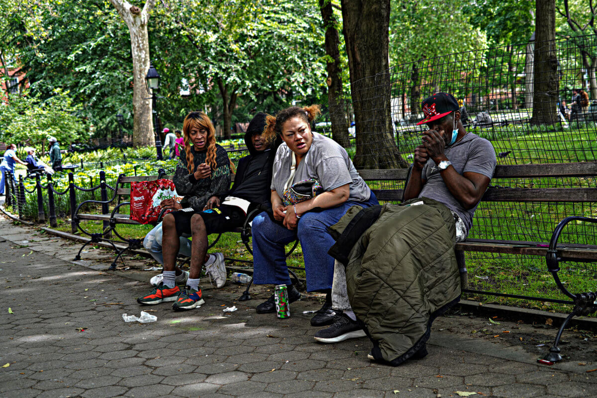 Three friends, Xander Morgenstern, Eliana Cohen and Aliya Markowitz laughed and chatted with each other on a Washington Square Park bench, while behind them a man with his pants around his ankles slept peacefully. Like most visitors to the park, they simply went about their business, some even choosing to eat their lunch next to the individual.