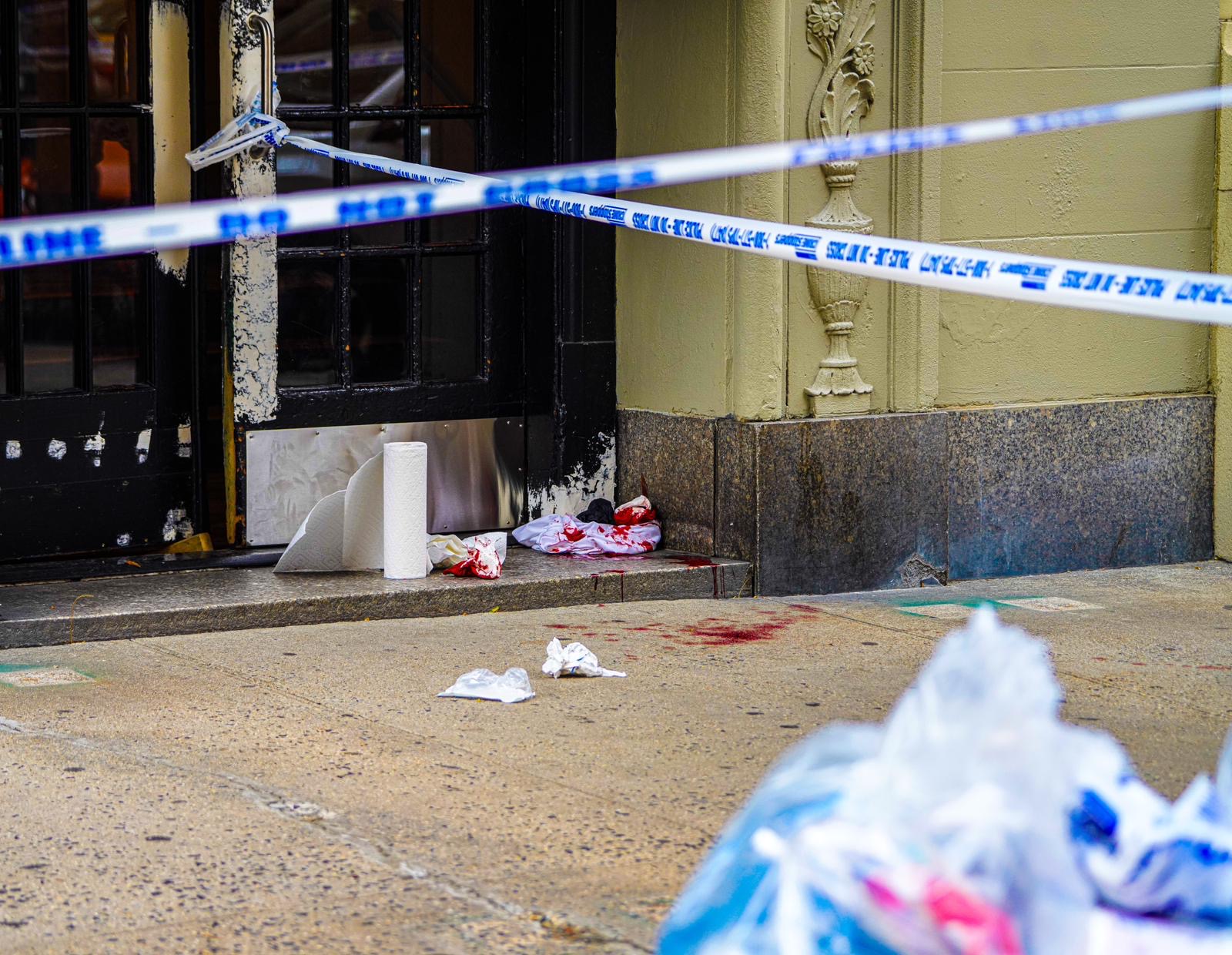 Following the attack, eyewitnesses said, the victim crawled into the doorway of 114 West 86th St., holding tissues on his face to try and stop the bleeding while waiting for paramedics.