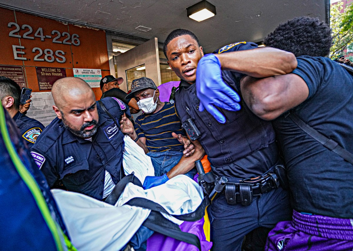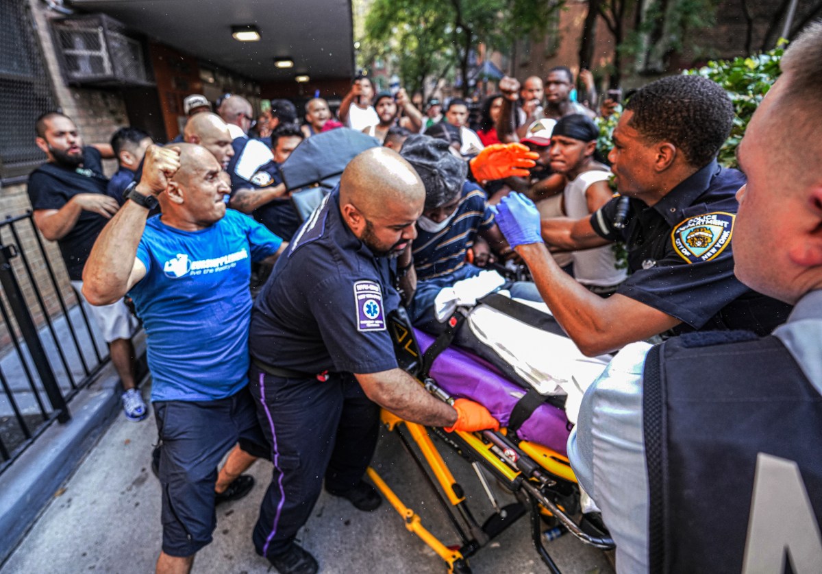 On July 8, Chief Kenny said that cops from the 13th Precinct responded to the Strauss Houses after locals recognized Irish for the crime and attempted to have their way with him, causing him to allegedly flash a handgun. Officers apprehended the suspect on the 9th floor and brought him down in the elevator, where EMS transferred him onto a stretcher as Williams’ family members and locals pounded their fists on the window.