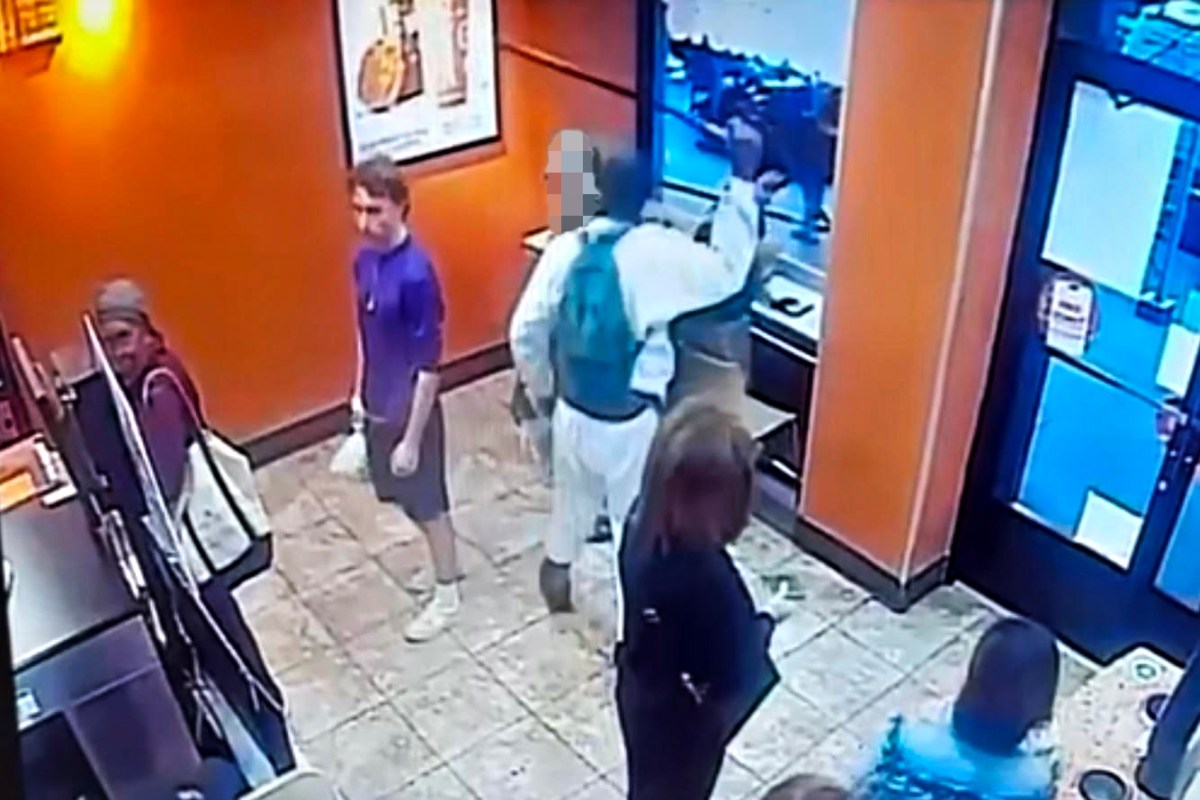“I go to this Dunkin Donuts every day, most days, and the fellow was sitting outside on a fire hydrant right next to the window itself,” the victim recalled. “He came in after me, and he started yelling.”