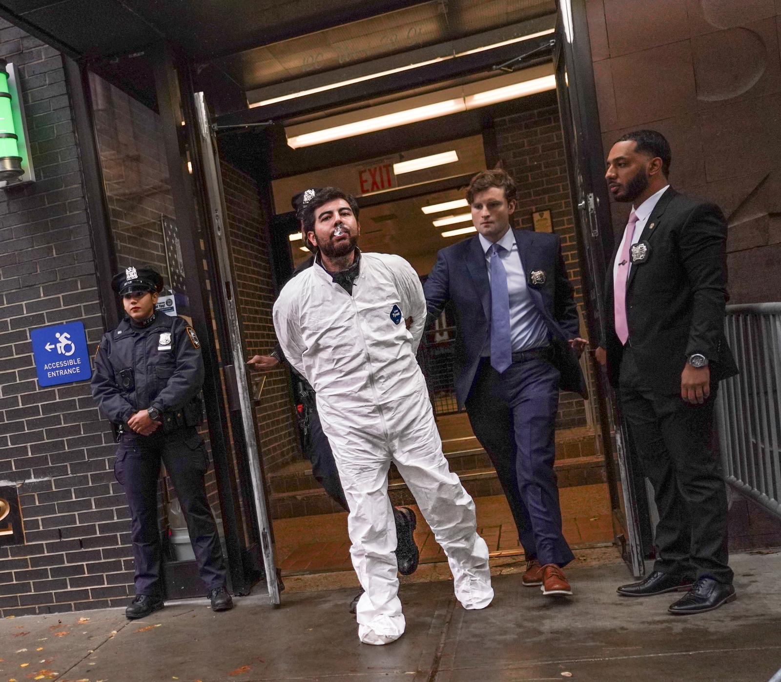 Just after 2 p.m. on Thursday, detectives escorted a Tyvek suit-clad Zinberg out of the 20th Precinct en route to his arraignment.