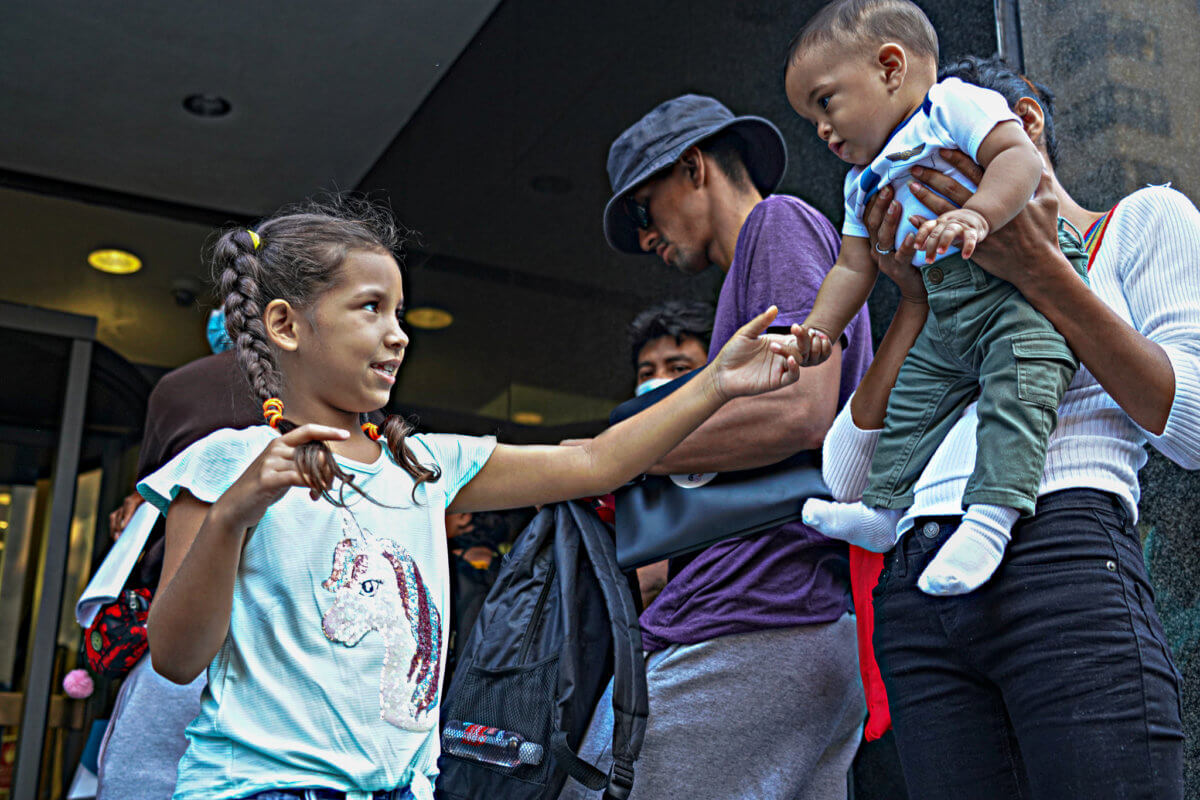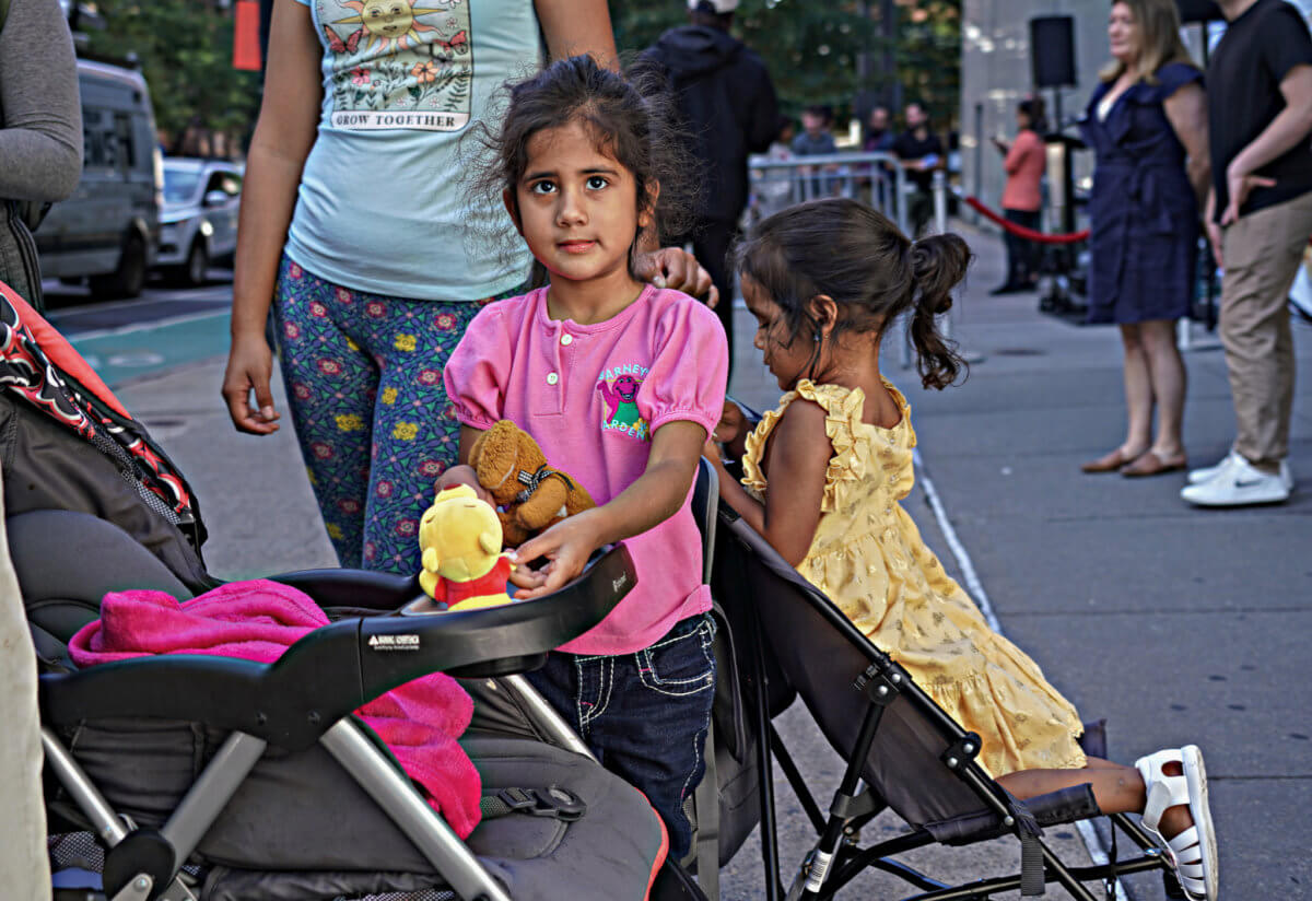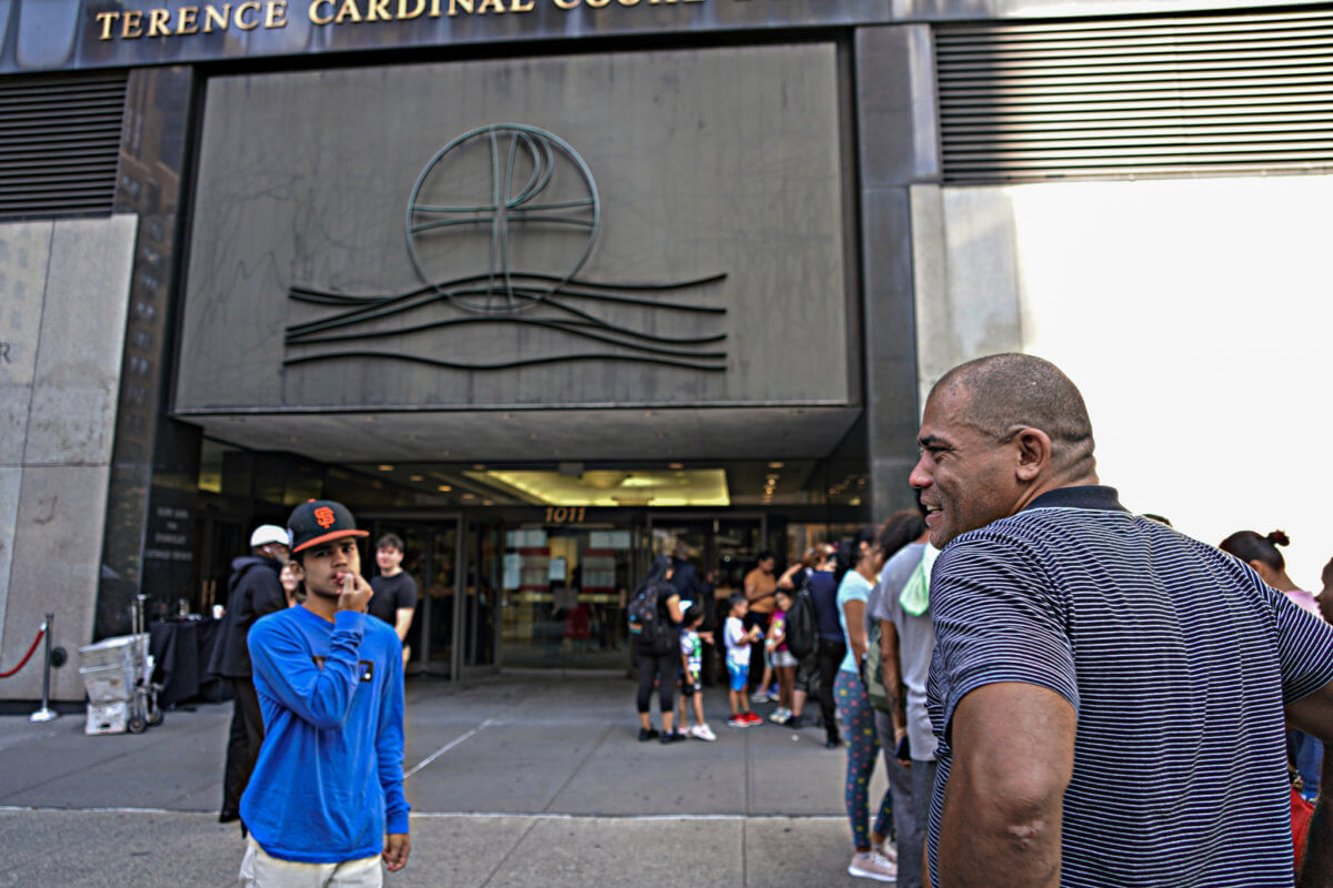Droves of migrants – many of them children – lined up outside the New York Catholic Center on 1011 1st Ave. in Midtown hoping to receive aid after their long journey across the border and the subsequent bus ride to New York City.