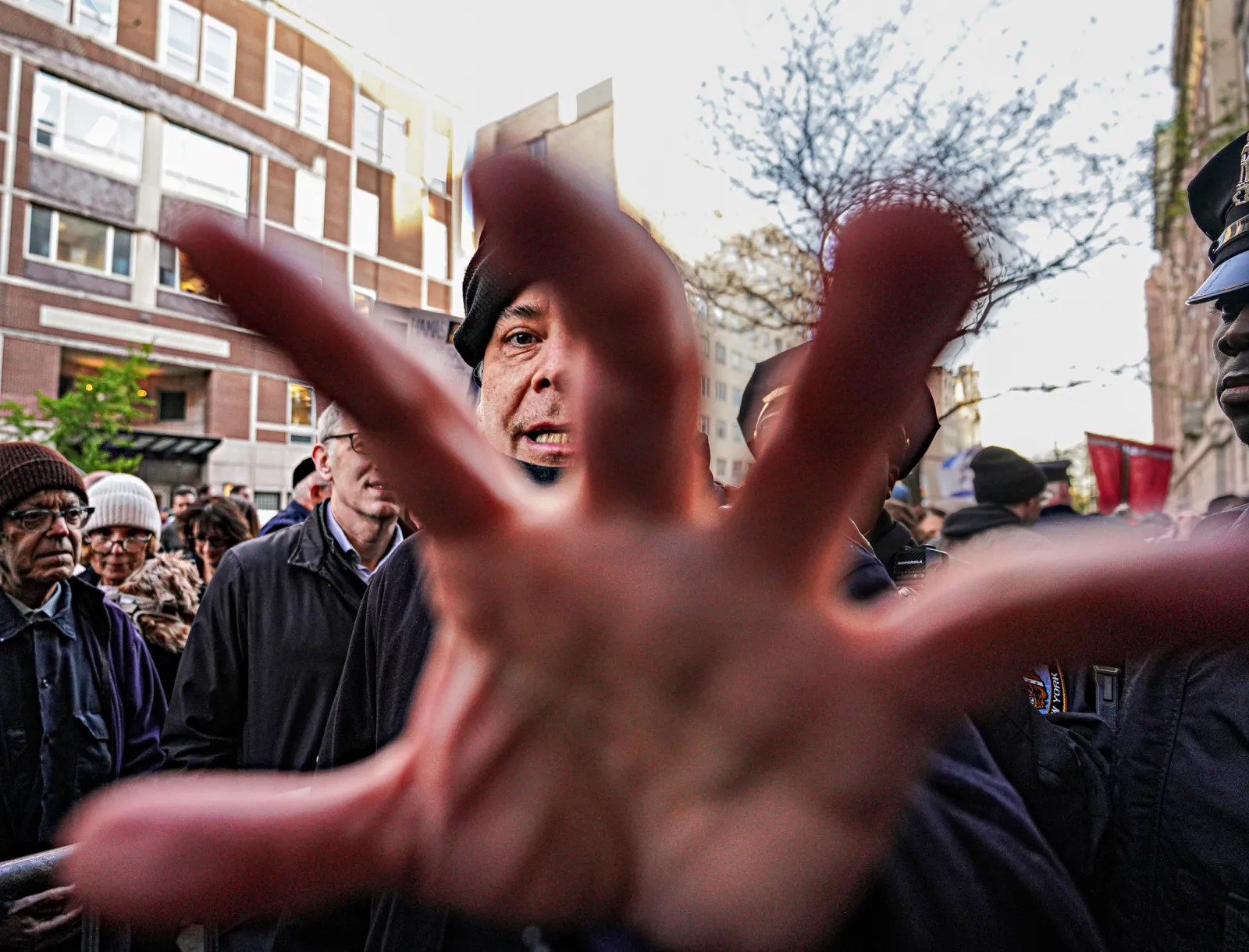 On May 14, a band of Palestine protesters barged into the Manhattan CUNY Graduate Center and staged an occupation in protest of the war in the Middle East. In this image, a masked man can be seen using his body weight to barricade a door closed. Photo by Dean Moses Joshua Zingberg, the suspect who allegedly slashed a tourist on the Upper West Side in a bloody assault Wednesday spat at the press , ranted and raved after police nabbed him on Nov. 21. Photo by Dean Moses Accused of fatally stabbing three New York during a rampage , Ramon Rivera, 51, sits in the back of a police vehicle on Nov. 18 cloaked in shadow and stares blankly.Photo by Dean Moses An Iconic World War II fighter plane arrives at Intrepid Museum as the sun rises on Oct. 2. Photo by Dean Moses An enraged protester grabs an amNewYork Metro photojournalist’s camera during a clash outside of Columbia Universit y on April 26. Photo by Dean Moses Luigi Mangione, the alleged Midtown assassin accused of fatally shooting UnitedHealthcare CEO Brian Thompson in front of a hotel earlier this month , returned to New York on Dec, 19 surrounded by armed cops in an historic perp walk. Photo by Dean Moses Faith Leaders lay heads on an embattled Mayor Eric Adams and prayed for him on Oct. 2 as Hizzoner faced a criminal indictment. Photo by Dean Moses Accused killer Chad Irish is brutally attacked by Kips Bay residents on July 8 for the slaying of Nicole William s paramedics attempted to rush him to safety. Photo by Dean Moses History is made as the NYPD raid an encampmen t set up on the grounds of Columbia University on April 18. Photo by Dean Moses Two men weep and hug after a drunk driver plowed through a July 4 barbecue inside Corlears Hook Park on the Lower East Side, which killed three. Photo by Dean Moses