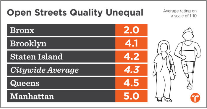 Black, Latino, and low-income New Yorkers were “significantly” more likely to live near a poorly-rated Open Street, according to the analysis and households earning $200,000 or more were more than twice as likely to live within walking distance of a highly-rated Open Street than a low-rated one.