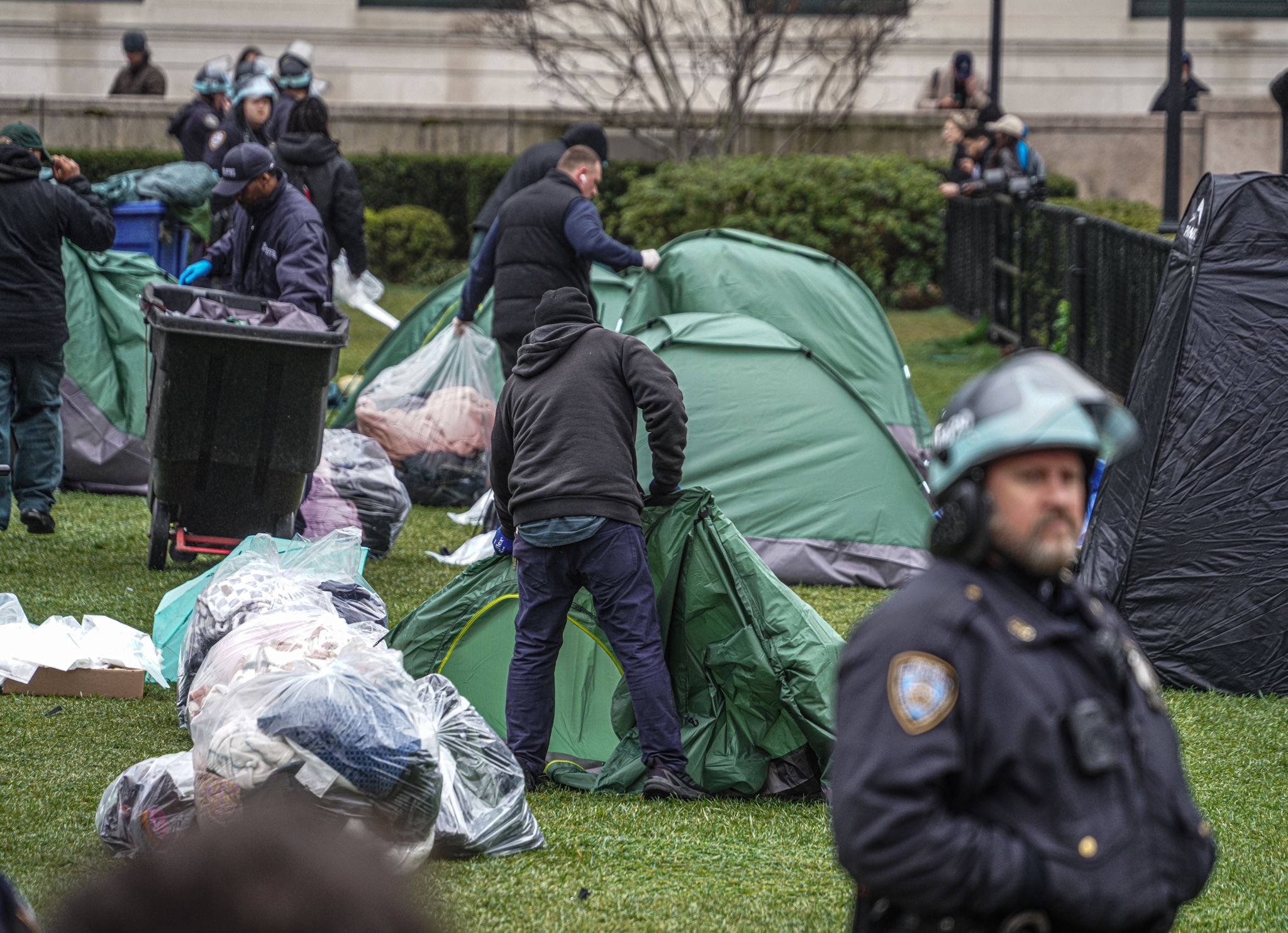 Cops in riot gear led by Police Commissioner Edward Caban, Chief of Patrol John Chell, and Deputy Commissioner of Operations Kaz Daughtry descended upon the encampment. Thousands looked on in fury and hostility, booing and chanting, “No pigs on campus.”
