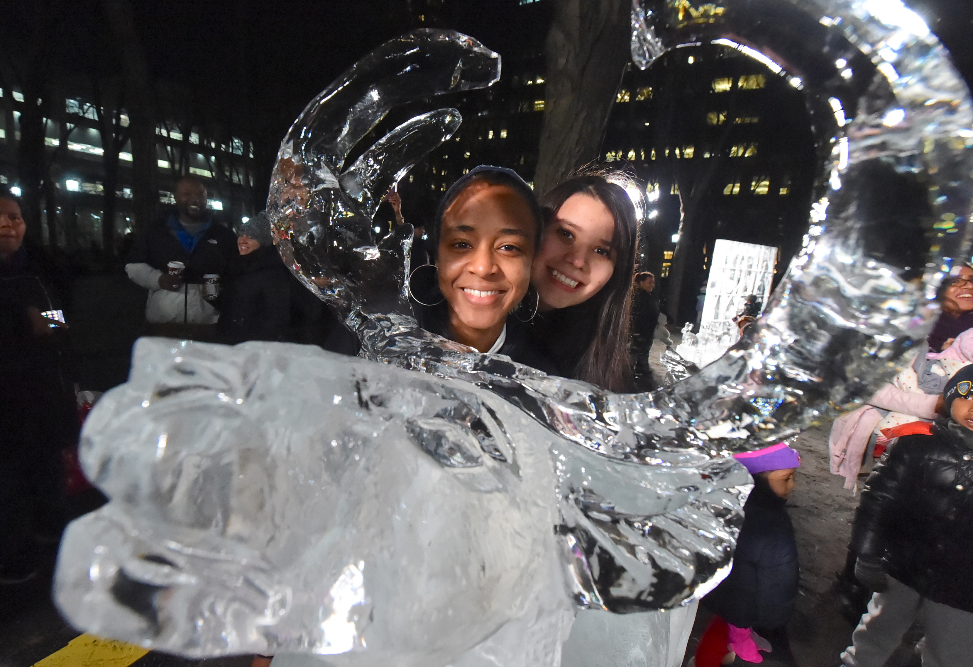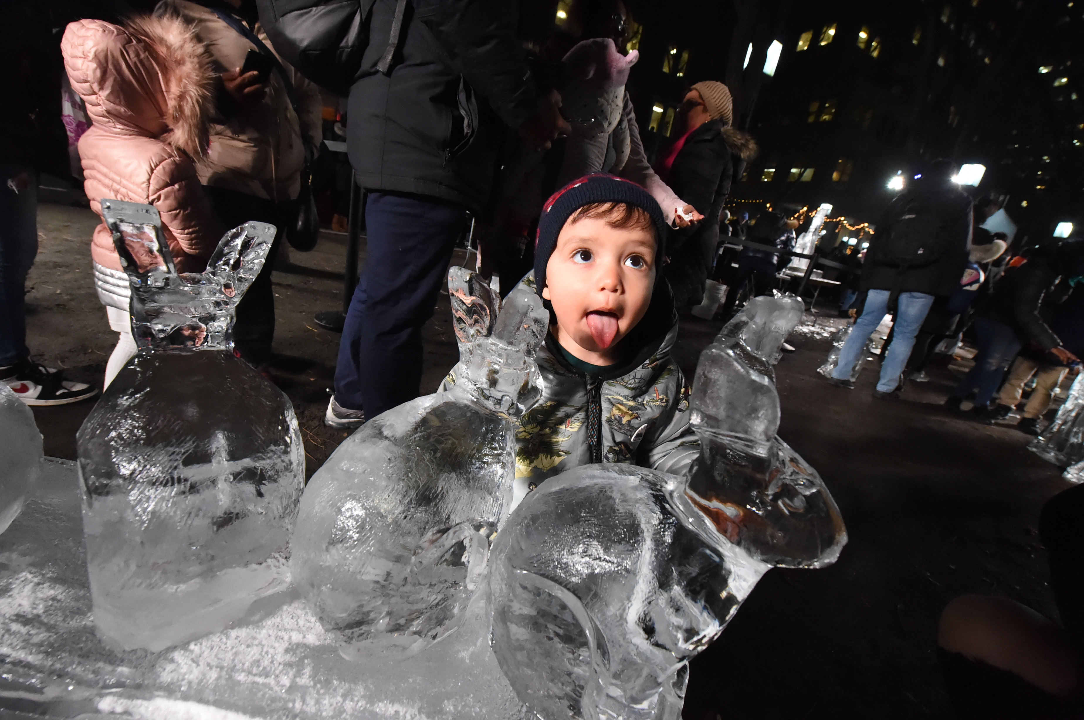 A holiday extravaganza was held at Metrotech last night for their Christmas tree lighting with Santa and a huge ice carving display courtesy of Brookfield Properties. (Photo by Todd Maisel)