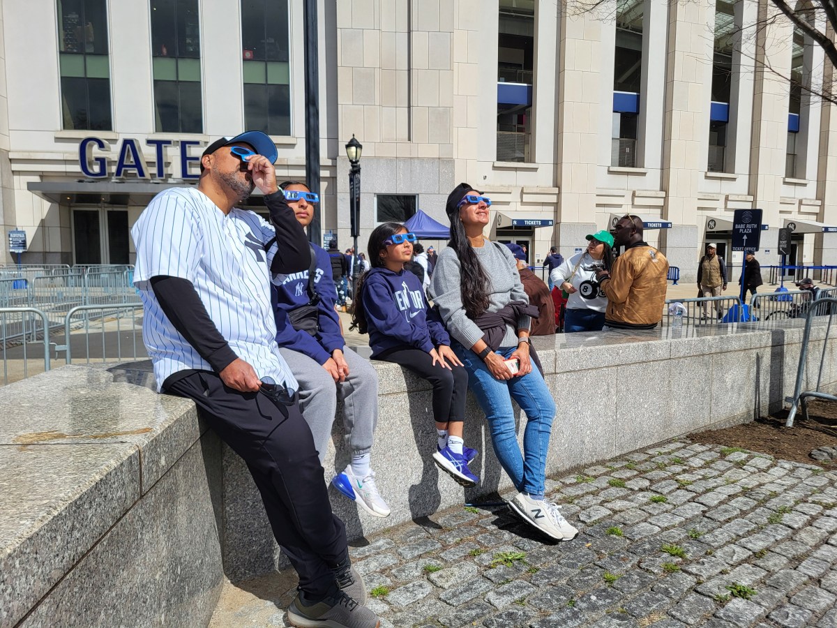 When the peak arrived at 3:25 p.m., it was as if time stood still around New York. School had let out by then, and homes and businesses emptied while people gathered on the street, in parks and even from apartment building parking lots to take in the spectacle.